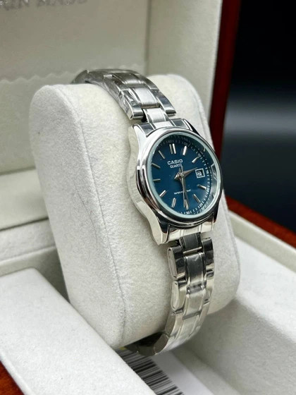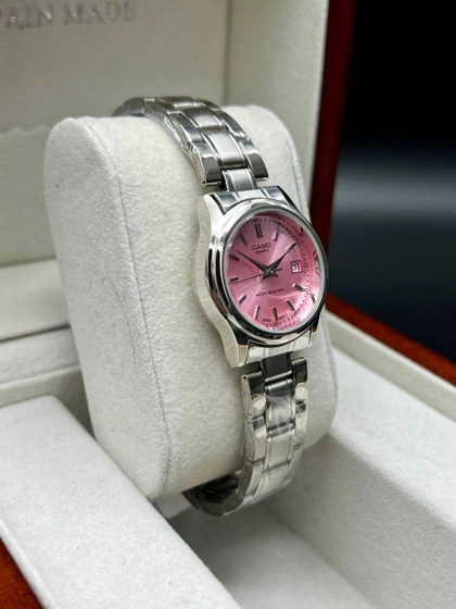 ساعت مچی کاسیو زنانه کیفیت عالی شیک و خاص کلاسیک - صفحه نقره ای بند دورنگ