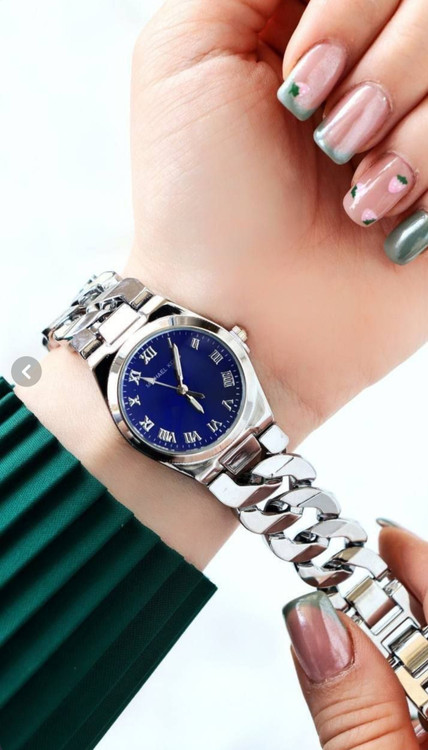 ساعت زنجیری زنانه بند نقره ای صفحه آبی
