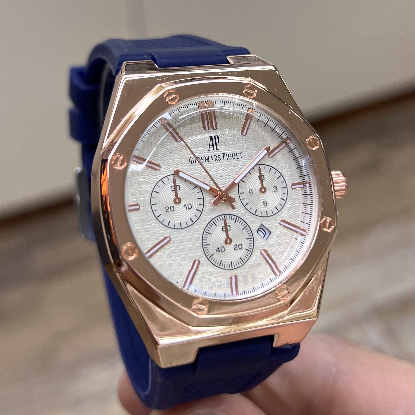 ساعت مردانه AP بند رابر طرح سه موتور رنگ سفید