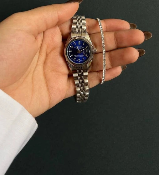 ساعت زنانه رولکس مدل دیت جاست با صفحه کاربنی و بند استیل ضد زنگ